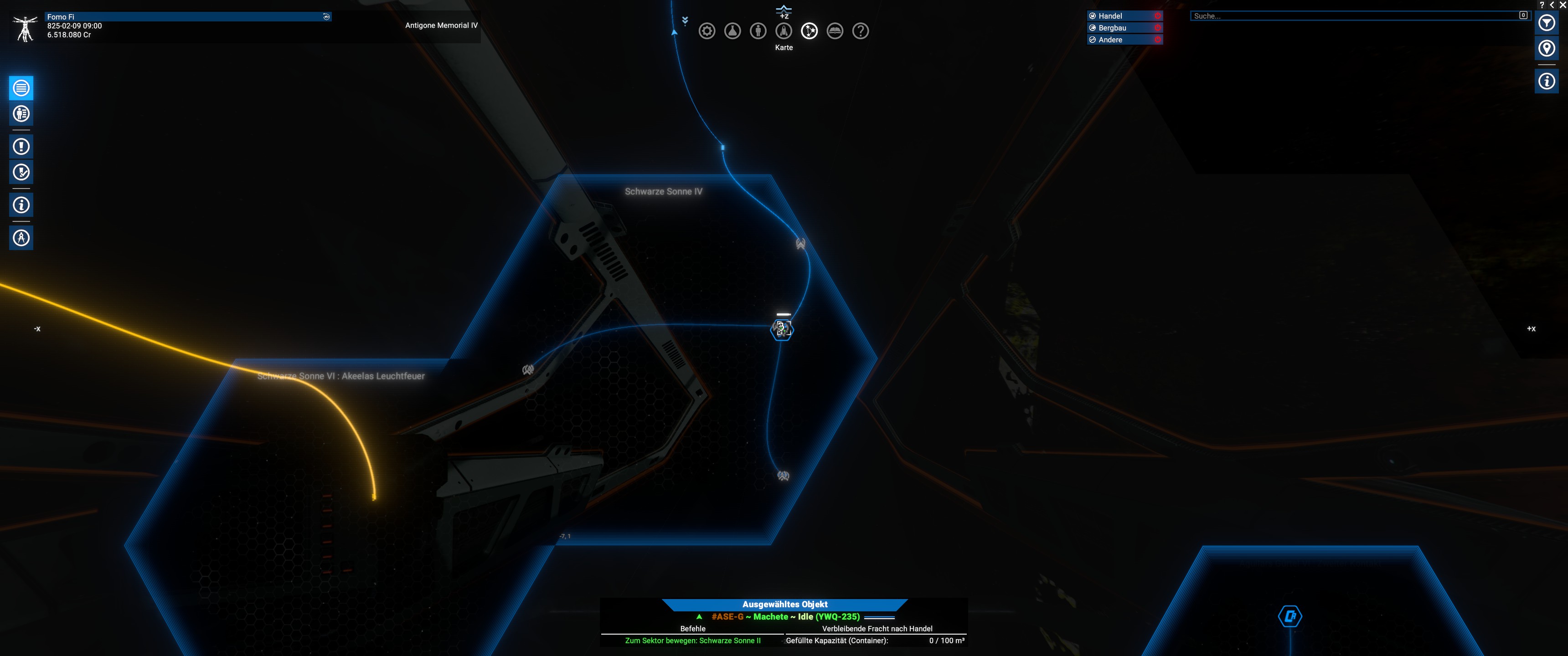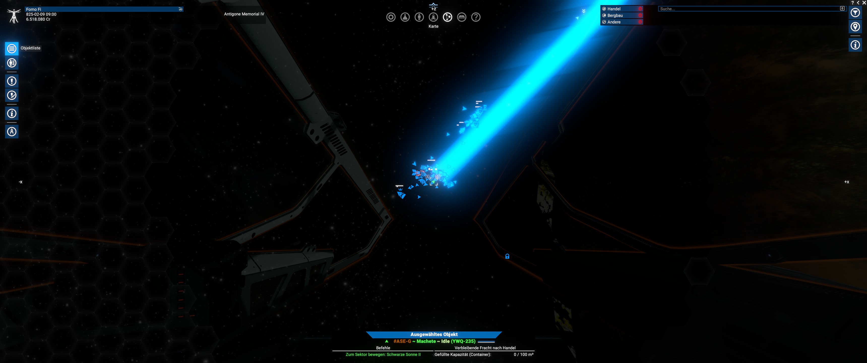 I started a new savegame (I chose Van Selton), but unfortunately I had no luck. At first it looked like all ships were passing the highway entrance in the middle of “Black Sun IV” normally. I ejected a satellite and traveled to other sectors while keeping an eye on the above highway entrance. For the first 10 minutes there were no problems with large L or XL ships. After some more time, however, three Behemoths (apparently a fleet of 3) appeared and flew exactly between the entrance and exit. Later, another construction ship followed. They all flew to exactly the same point (see screenshot) and then stayed there forever. When I switched to the live stream view, all the ships were interlocked and after a few seconds they scattered explosively around the highway entrance. But they didn't move any further.